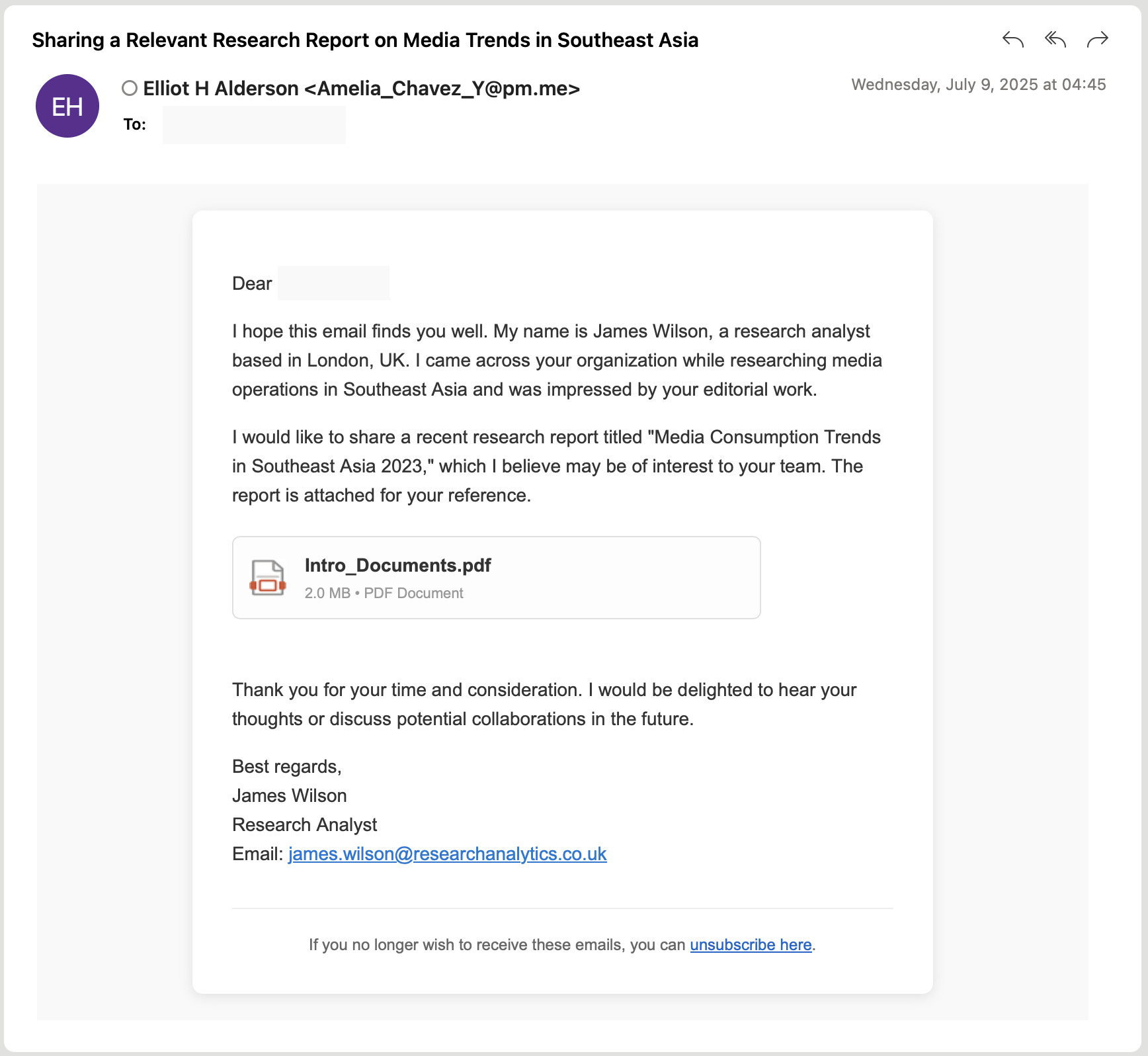 In several emails, the domains used in the email signatures were fabricated domains that do not exist or otherwise do not have MX records or any active DNS resolutions, and therefore would not be able to receive email. One example is researchanalytics.co[.]uk. It could be argued this is a human decision to add legitimacy to the phishing email; however, in Volexity’s experience, the inclusion of a non-existent domain for this is extremely rare; more commonly, a legitimate and related domain is included. This tactic was used by UTA0388 in some of their most recent phishing emails, with the first email containing no malicious content and only subsequent replies containing the malicious links to archives. It is Volexity’s view that the inclusion of a fabricated domain is reflective of an LLM’s propensity to fabricate information.